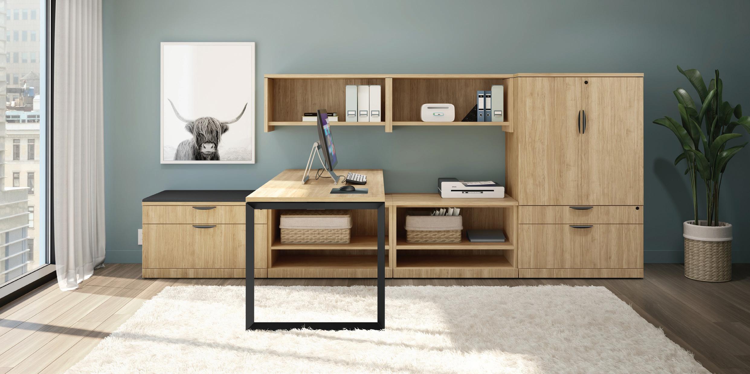 With so many options, it can be hard to know where to start. Kelly says, “If someone is not seeing exactly what they are looking for, speaking with a commercial sales representative would be their best route. So much of what is available is modular and flexible and customizable.” A sales rep can be your most important resource for making the centerpiece of your home office exactly what you need, from intern to CEO and hobbyist to maestro.