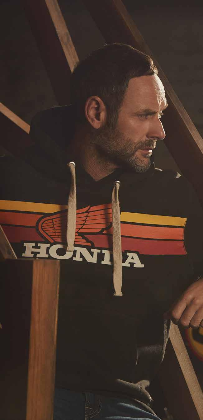 Our premium range of jackets, hoodies, t-shirts and caps takes you on a journey into the world of Honda, celebrating our heritage, engineering prowess and legendary motorcycles.