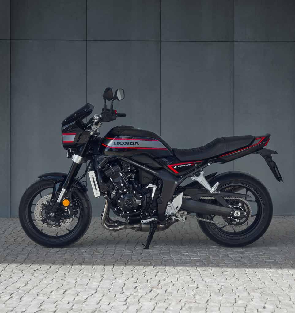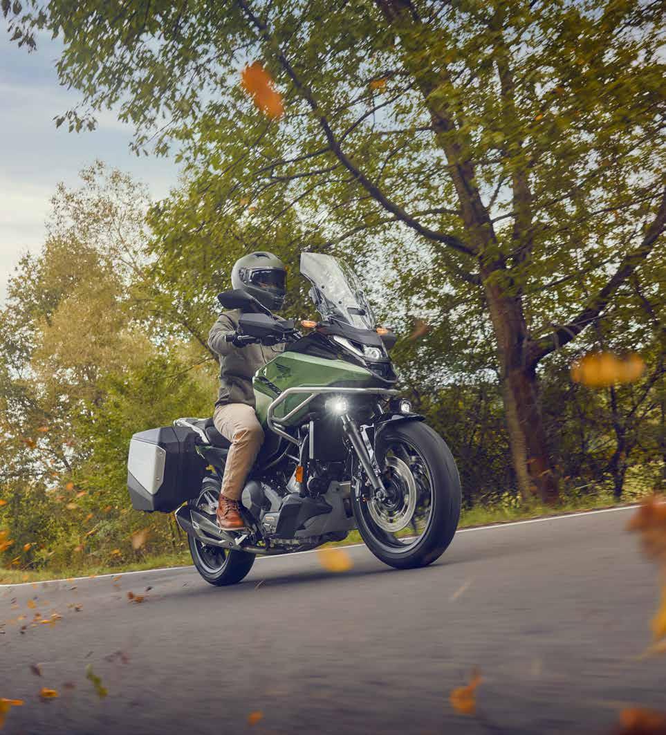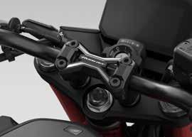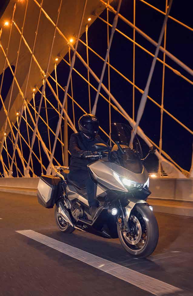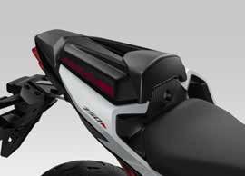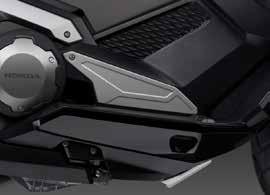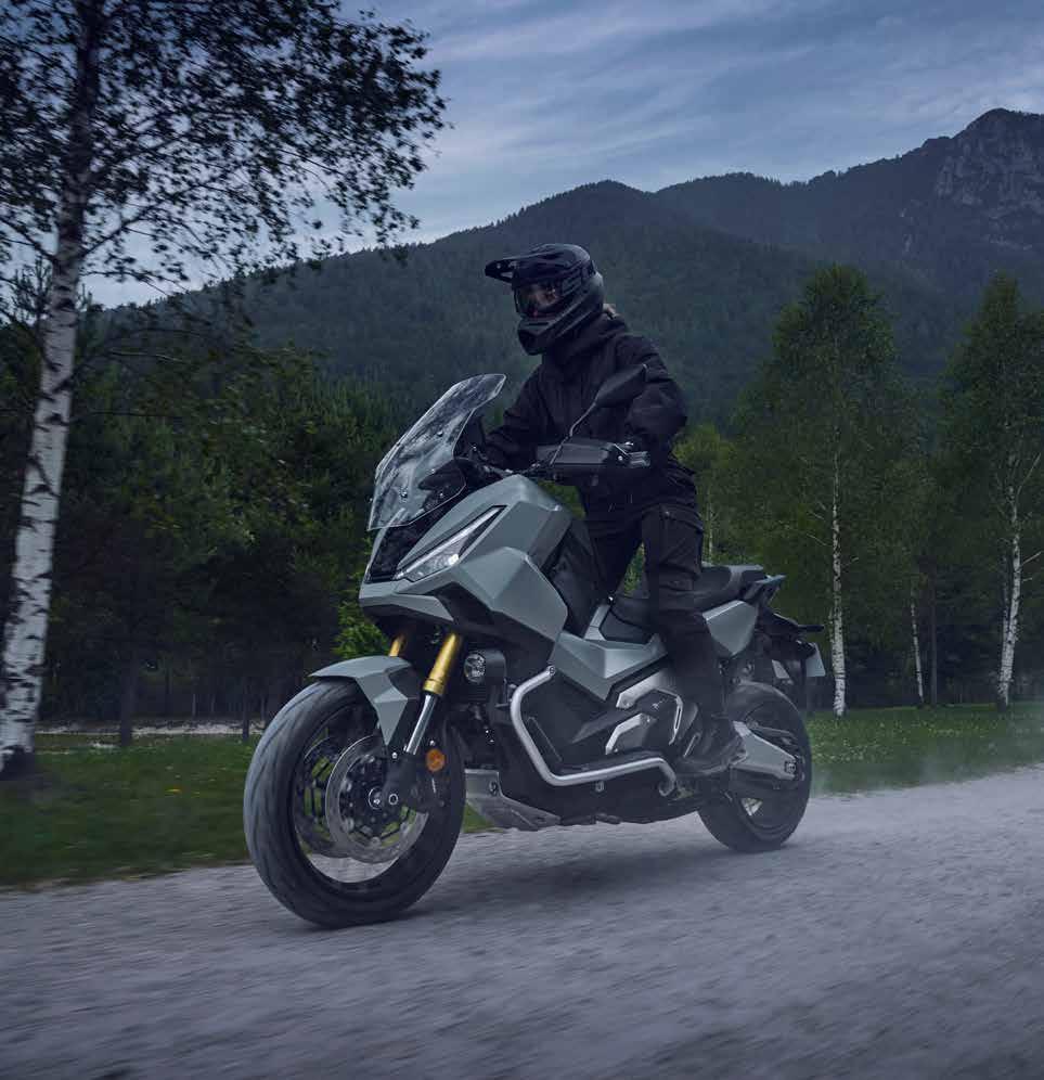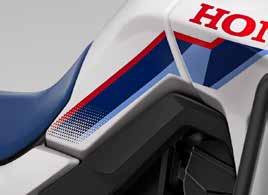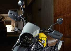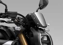 The specific details of this brochure do not apply to any particular product supplied or offered for sale. Manufacturers reserve the right to vary specifications, including colours, with or without notice at such times in such manner as deemed appropriate. Major as well as minor changes may be involved. Every effort, however, is made to ensure the accuracy of the particulars contained in this brochure. Consult your Dealer for details regarding the specifications of any featured product. This publication shall not constitute – under any circumstances whatsoever – an offer by the Company to any individual. All sales are made by the Distributor or Dealer subject to and with the benefit of the standard Conditions of Sale and Warranty provided by the Distributor or Dealer, copies of which may be obtained upon request. While efforts are made to ensure specification accuracy, brochures are prepared and printed several months in advance of distribution and consequently cannot always immediately reflect either changes in specification or in some isolated cases the provision of a particular feature. Customers are always advised to discuss specific details with the supplying Dealer, especially if a selection is dependent upon one of the features advertised. Please contact your local dealer for information and specifications. Please note that the fuel consumption figures provided are results obtained by Honda under standardised testing conditions prescribed by WMTC. Tests are conducted on a rolling road using a standard version of the vehicle with only one rider and no additional optional equipment. Actual fuel consumption may vary depending on how you ride, how you maintain your vehicle, weather, road conditions, tyre pressure, installation of accessories, cargo, rider and passenger weight, and other factors. You accept that if you do go ahead and make a purchase or enter into any kind of transaction, whether for payment or not, you did so entirely in reliance on your own skill and judgement and not on that of anyone else.