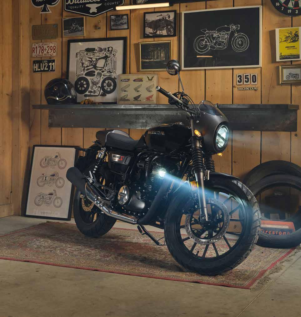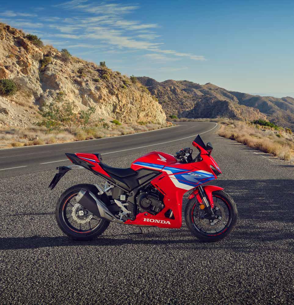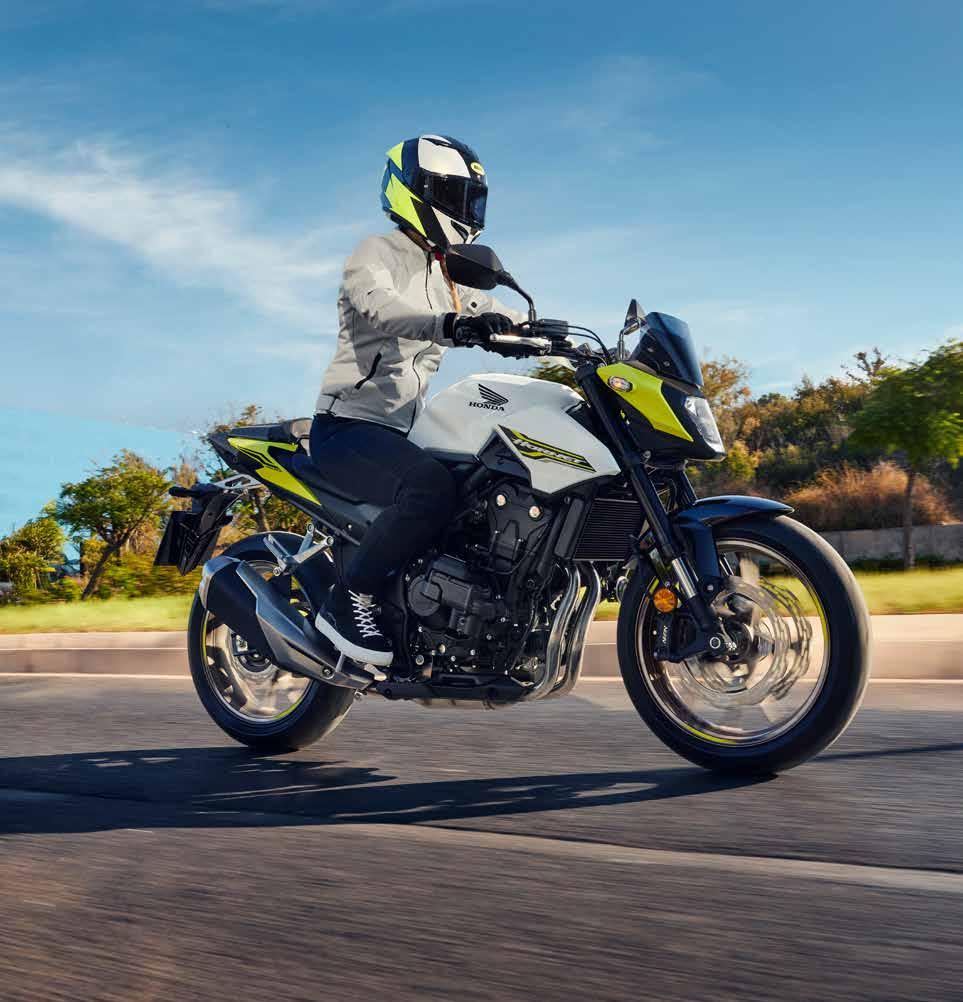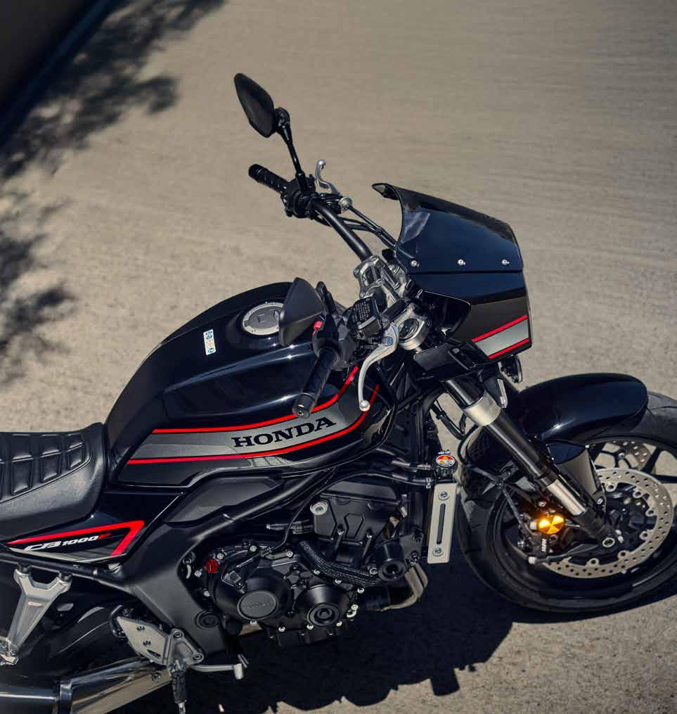 The specific details of this brochure do not apply to any particular product supplied or offered for sale. Manufacturers reserve the right to vary specifications, including colours, with or without notice at such times in such manner as deemed appropriate. Major as well as minor changes may be involved. Every effort, however, is made to ensure the accuracy of the particulars contained in this brochure. Consult your Dealer for details regarding the specifications of any featured product. This publication shall not constitute – under any circumstances whatsoever – an offer by the Company to any individual. All sales are made by the Distributor or Dealer subject to and with the benefit of the standard Conditions of Sale and Warranty provided by the Distributor or Dealer, copies of which may be obtained upon request. While efforts are made to ensure specification accuracy, brochures are prepared and printed several months in advance of distribution and consequently cannot always immediately reflect either changes in specification or in some isolated cases the provision of a particular feature. Customers are always advised to discuss specific details with the supplying Dealer, especially if a selection is dependent upon one of the features advertised. Please contact your local dealer for information and specifications. Please note that the fuel consumption figures provided are results obtained by Honda under standardised testing conditions prescribed by WMTC. Tests are conducted on a rolling road using a standard version of the vehicle with only one rider and no additional optional equipment. Actual fuel consumption may vary depending on how you ride, how you maintain your vehicle, weather, road conditions, tyre pressure, installation of accessories, cargo, rider and passenger weight, and other factors. You accept that if you do go ahead and make a purchase or enter into any kind of transaction, whether for payment or not, you did so entirely in reliance on your own skill and judgement and not on that of anyone else.