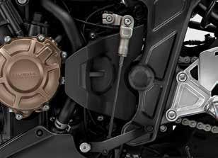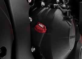 The Oil level gauge is made out of high-quality, precision-cut aluminum. The filler cap is anodized in vibrant red, and both sides of the handgrip are laseretched with the Honda logo. It has a hole to wire it for those riders who want to use it on a circuit.