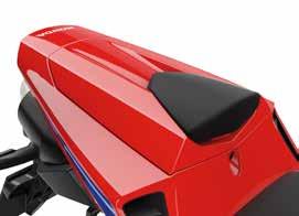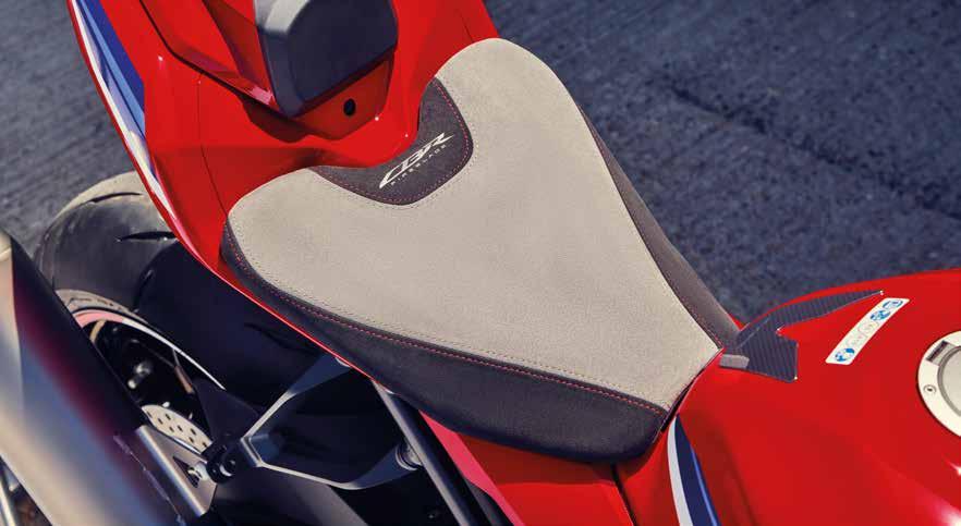 Made of luxury Alcantara material that provides outstanding soft feel and superb breathability, the Rider Special Seat improves the riding comfort. Protected with a water repellent finish, the beautiful matt texture of this seat and the CBR branding increase the premium feel of the Fireblade RR-R.
