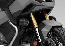 Set of 2 additional front Led headlights that will increase the visibility for the riders and make them more noticeable for the surrounding traffic. The LED Fog Lights increase visibility during poor weather conditions with strong brightness despite low energy consumption (11W). Operated through the handlebar SW and displayed on the TFT display.