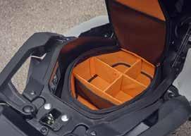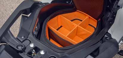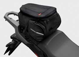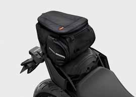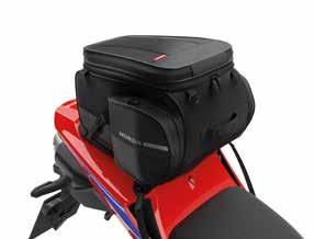 Functional rear bag specifically adapted to the tapered shape of the rear seat. Capacity of 15L that can be expanded to 22L. Easily attached and perfectly stable when installed with the specific attachment included.