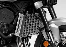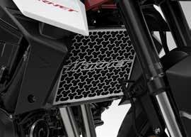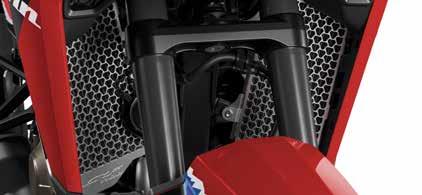 Made of stainless steel and showcasing the CRF logo, the Radiator Grills increase the African Twin tough image. Their original mesh pattern combines cooling capabilities with protection for the radiators against flying debris.