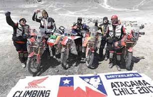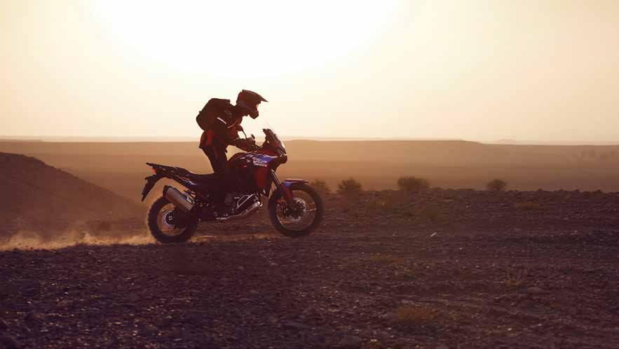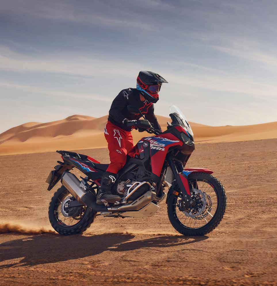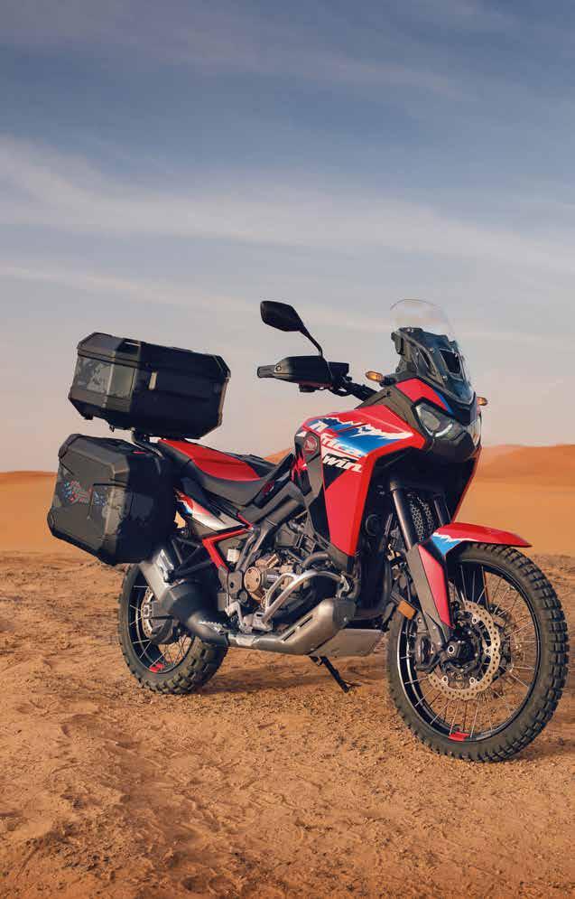 In 2017, the Africa Twin broke the record for the highest altitude reached by a twincylinder motorcycle. After 5 days of acclimatisation, a team of 5 five riders piloted the Africa Twin onto the slopes of the world’s highest active volcano, the Nevado Ojos del Salado – located between Argentina and Chile. Reaching 5,965 metres above sea level, the international team completed its ascent within 24 hours with Africa Twin specially equipped with Termignoni exhaust, revised final sprockets, new Metzeler MC360TM tyres and a range of Honda genuine accessories, Their route took them – in temperatures as low as minus 5 degrees Celsius – through broken asphalt, gravel, mud, sand and finally stretches of ice pockets known as ‘penitentes’, underlining once again the Africa Twin’s credentials as the best-performing off-road motorcycle in its class.