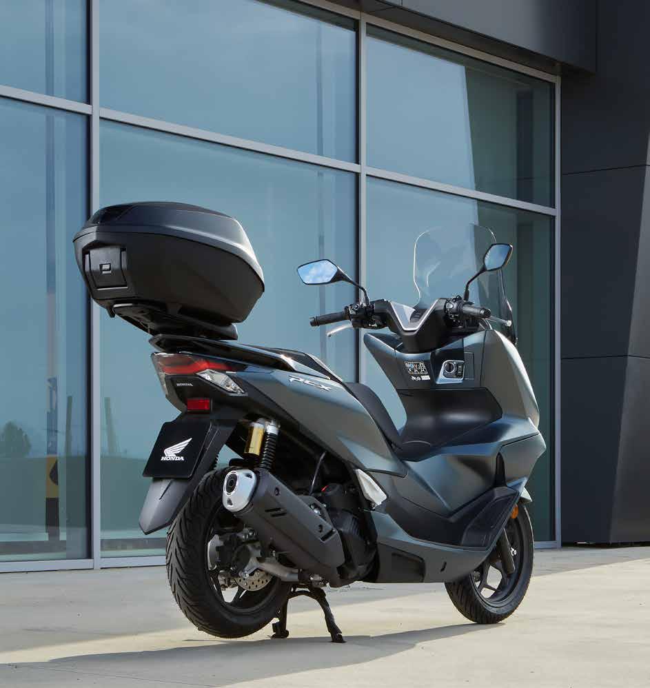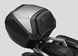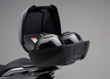 38L Top Box suitable for one helmet. The Honda one key system allows to operate the top box by using the ignition key. Top box base, key system and backrest are included.