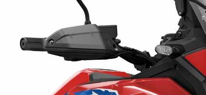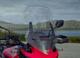 Wind and weather protection are enhanced by the upper deflector, which improves the ride comfort by reducing traveling air around the rider’s arms.