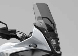 Developed after wind-tunnel and real-life riding sessions, the High Wind Screen combines increased wind protection and improved motorcycle control. Compared to the standard version, the top of the wind screen is 8mm higher and 40mm further forward. Furthermore, as a Genuine Honda design, it is fully WVTA certified. 2 versions available: