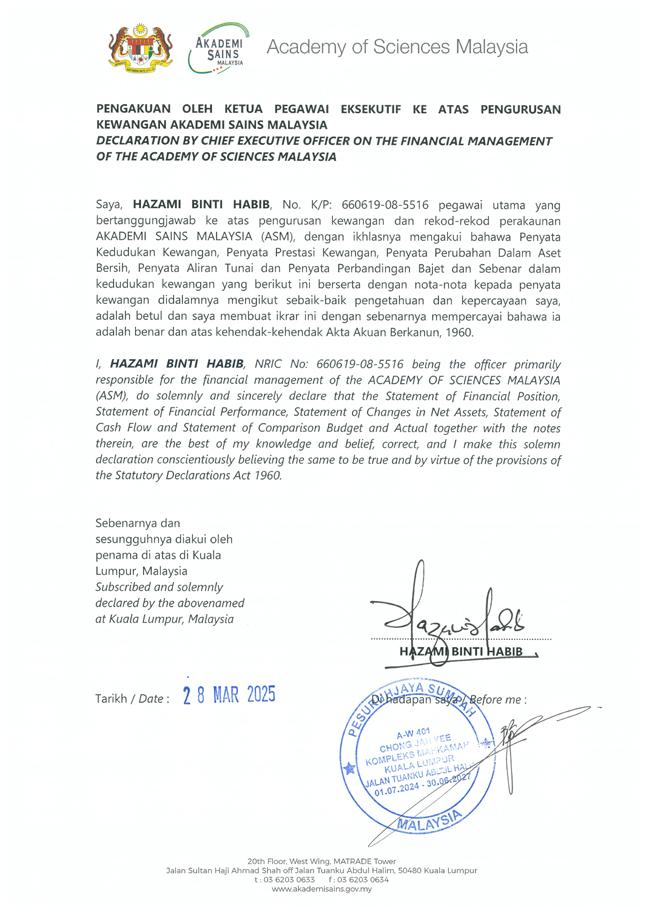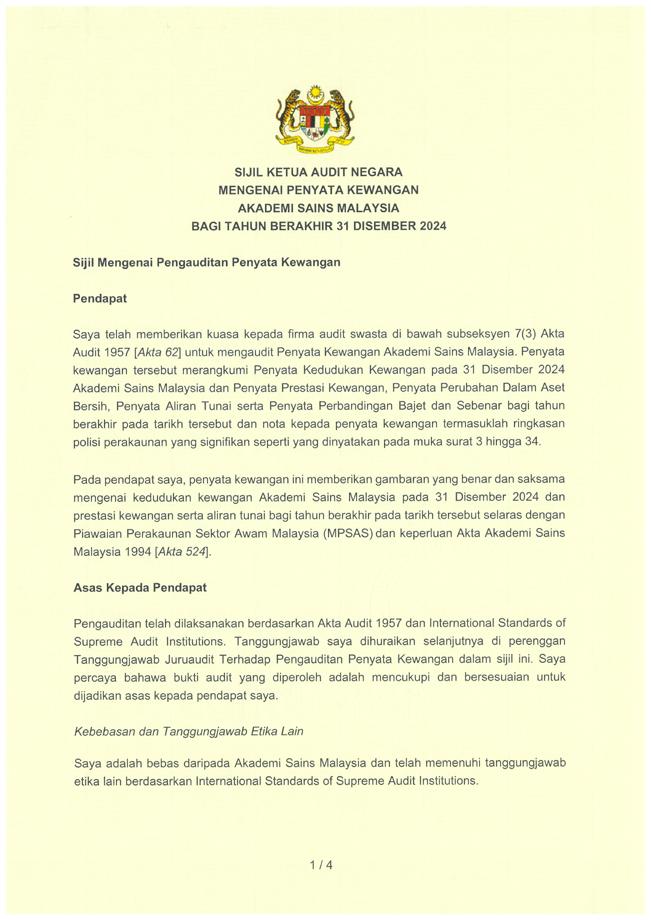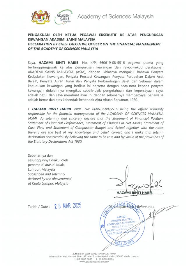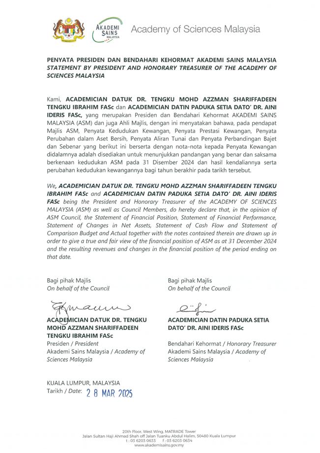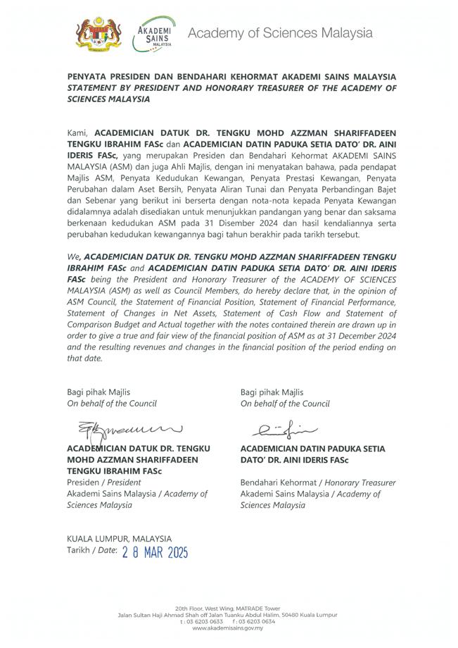 Saya yakin pembaca akan mengguna laporan ini sebagai panduan yang berguna untuk menghadapi dunia masa hadapan. Kami di ASM berhasrat untuk terus bekerjasama dengan semua pemegang taruh dalam membentuk dunia yang lebih selesa, harmoni dan makmur untuk diri sendiri dan seluruh insan sejagat.