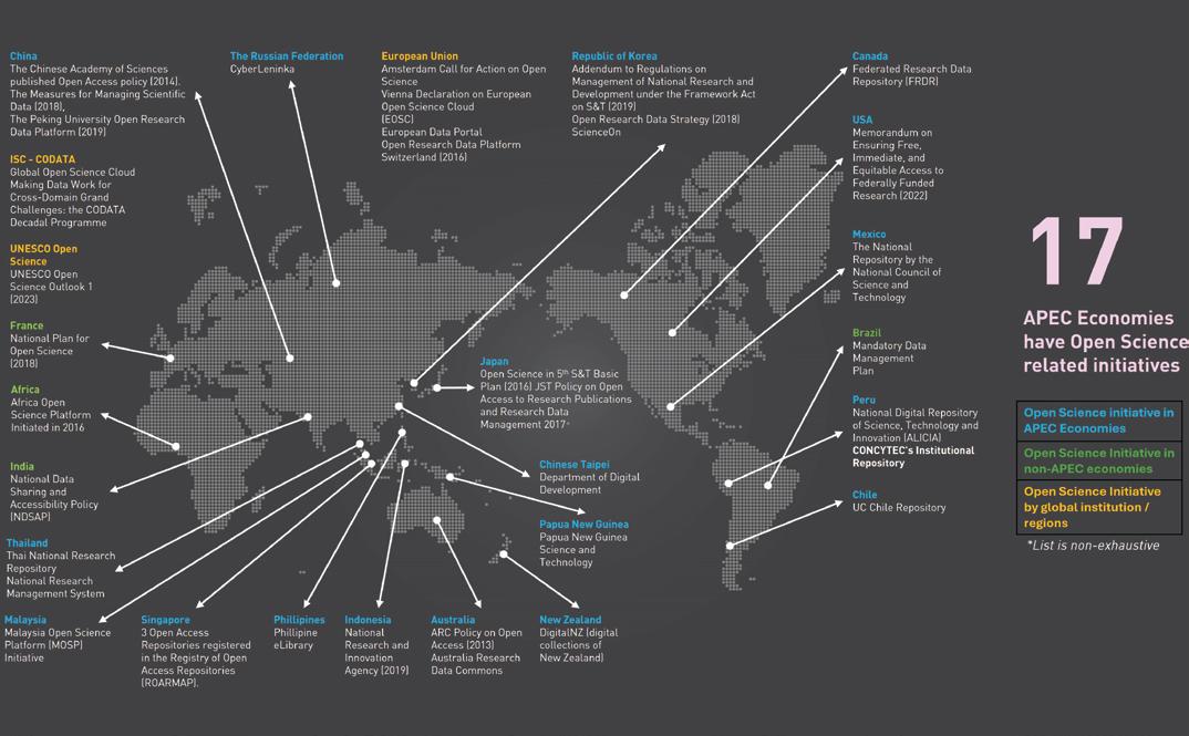 Berikutan kejayaan awal Malaysia Open Science Alliance (MOSA) dalam mempromosi sains terbuka di negara ini, ASM telah memperluaskan konsep tersebut di peringkat serantau melalui cadangan penubuhan APEC Open Science Alliance (APECOSA). Cadangan ini telah dikemukakan pada tahun 2023, dengan tujuan menggalakkan negara-negara APEC berkongsi amalan terbaik dan pengetahuan dalam menangani cabaran serantau. Kajian landskap sedang dijalankan bagi mengenal pasti inisiatif sains terbuka dalam kalangan negara APEC dan hasil kajian ini dijadual untuk dibentangkan pada tahun 2025.