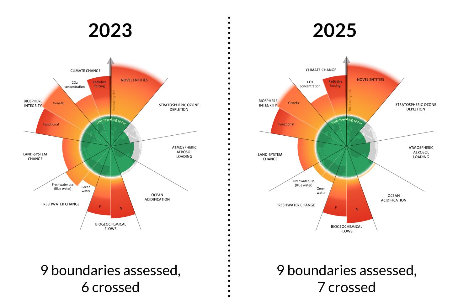 The environmental condition continues to deteriorate over the past 70 years; and by 2024, six out of nine planetary boundaries were breached. These planetary boundaries are scientifically defined thresholds introduced to guide humanity in living within Earth’s ecological limits which include critical systems such as climate change, biosphere integrity, land-system change, freshwater use, and biogeochemical flows.