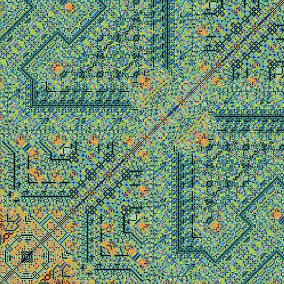 This artwork is in the form of animations generated from mathematical patterns used to model quasicrystals. The ThueMorse sequence is a one-dimensional analogue of quasicrystal structures. Autocorrelations of the Thue-Morse sequence refer to a measure of how closely related a Thue-Morse sequence is with shifts of itself. We calculate the autocorrelations for different shifts to create an array of numbers, and then we generate pictures by mapping the numbers to various colours. This generates a remarkable series of patterns that we place in an animation. Thus, the mathematical formulae create art, an interesting example of artificial intelligence.