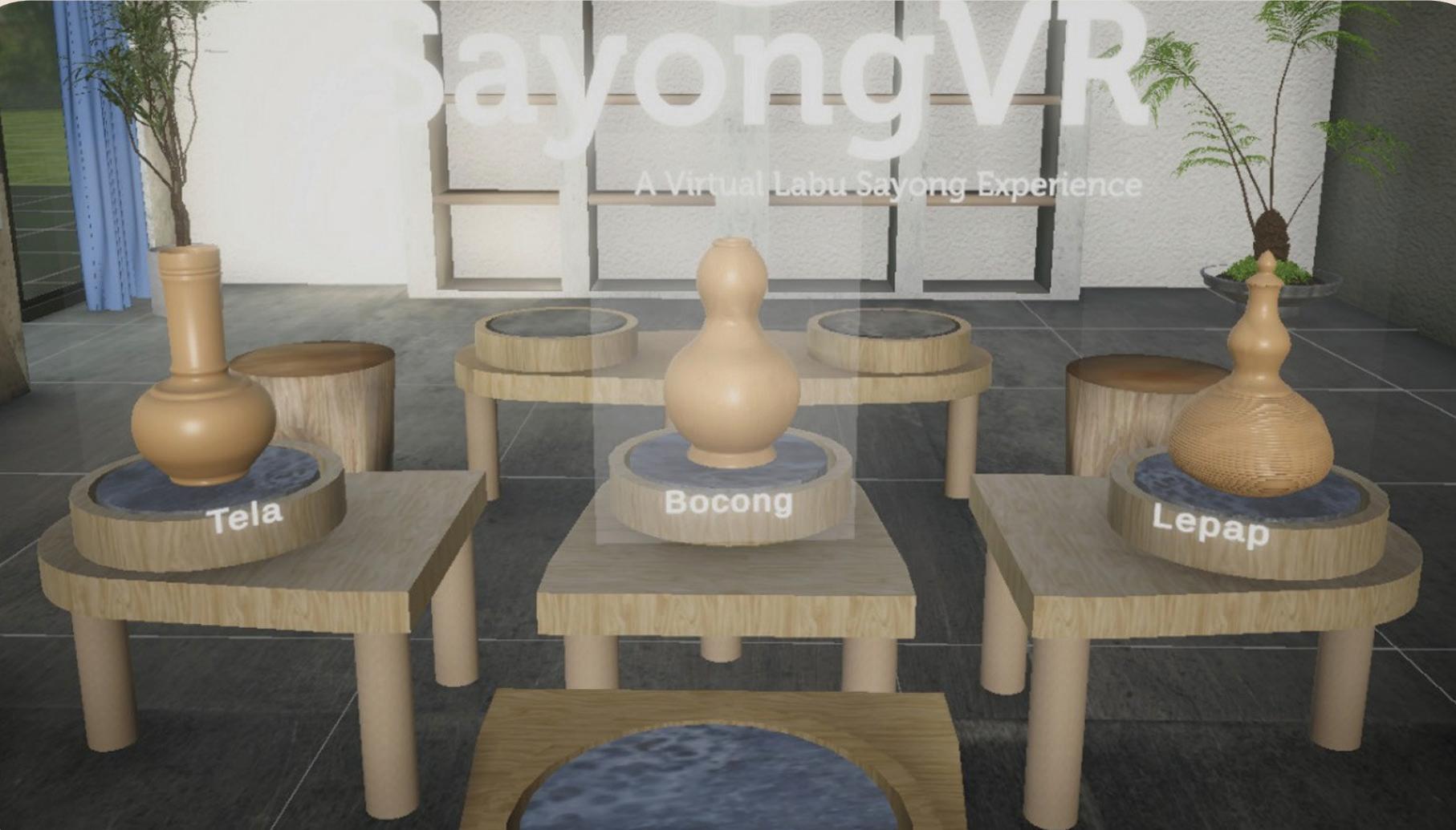 “SayongVR: A Virtual Labu Sayong Experience” is an innovative initiative that reimagines the traditional craft of Labu Sayong through immersive digital technology. It provides an interactive platform that allows users to explore, design, and engage with virtual replicas of the iconic Perak water vessel using virtual reality within a simulated ceramic workshop environment. By integrating cultural heritage with digital innovation, SayongVR enhances access to traditional arts among tech-savvy youth. The project also reduces reliance on physical resources and utilises AI through finger tracking technology to support the long-term preservation of cultural heritage through digital means.