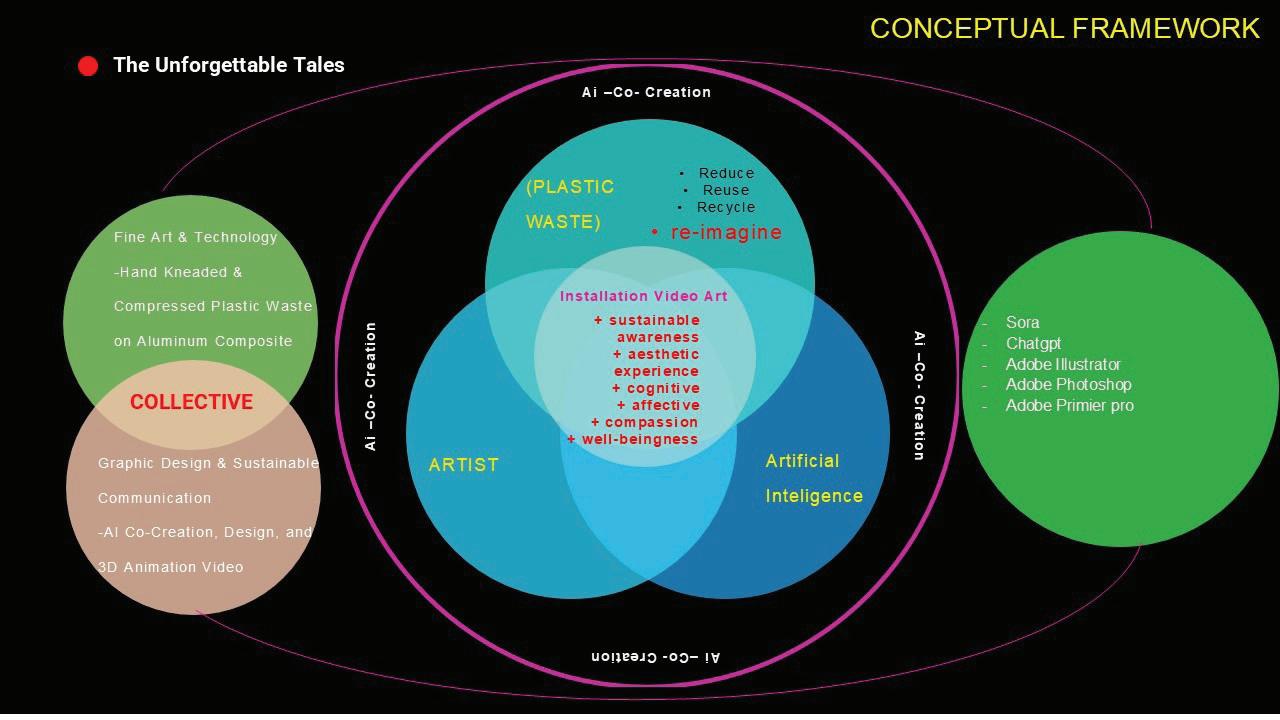 “The Unforgettable Tales” is a multi-sensory, transdisciplinary art project that bridges speculative imagination, scientific reflection, and digital innovation in response to one of the most pressing environmental issues of our time: plastic pollution. This work no longer exists within traditional frames; instead, it comes alive through moving images and AI-enhanced storytelling. By breathing digital life into fictional sea creatures born from waste, the project merges ecological urgency with a forward-looking vision of how art and AI can co-create narratives of survival, adaptation, and transformation.