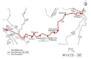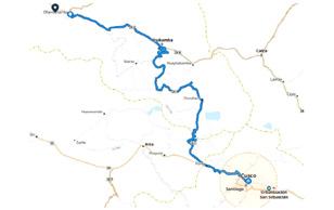 El viaje desde Cusco hacia Machu Picchu puede realizarse por carretera, siendo el circuito más corto el señalado en el mapa de la Figura N° 26. Se llega a la localidad de Ollantaytambo, distante a unos 67 kilómetros, donde se debe hacer el transbordo al ferrocarril. Otra alternativa es por la localidad de Anta, con un recorrido de 90 kilómetros.