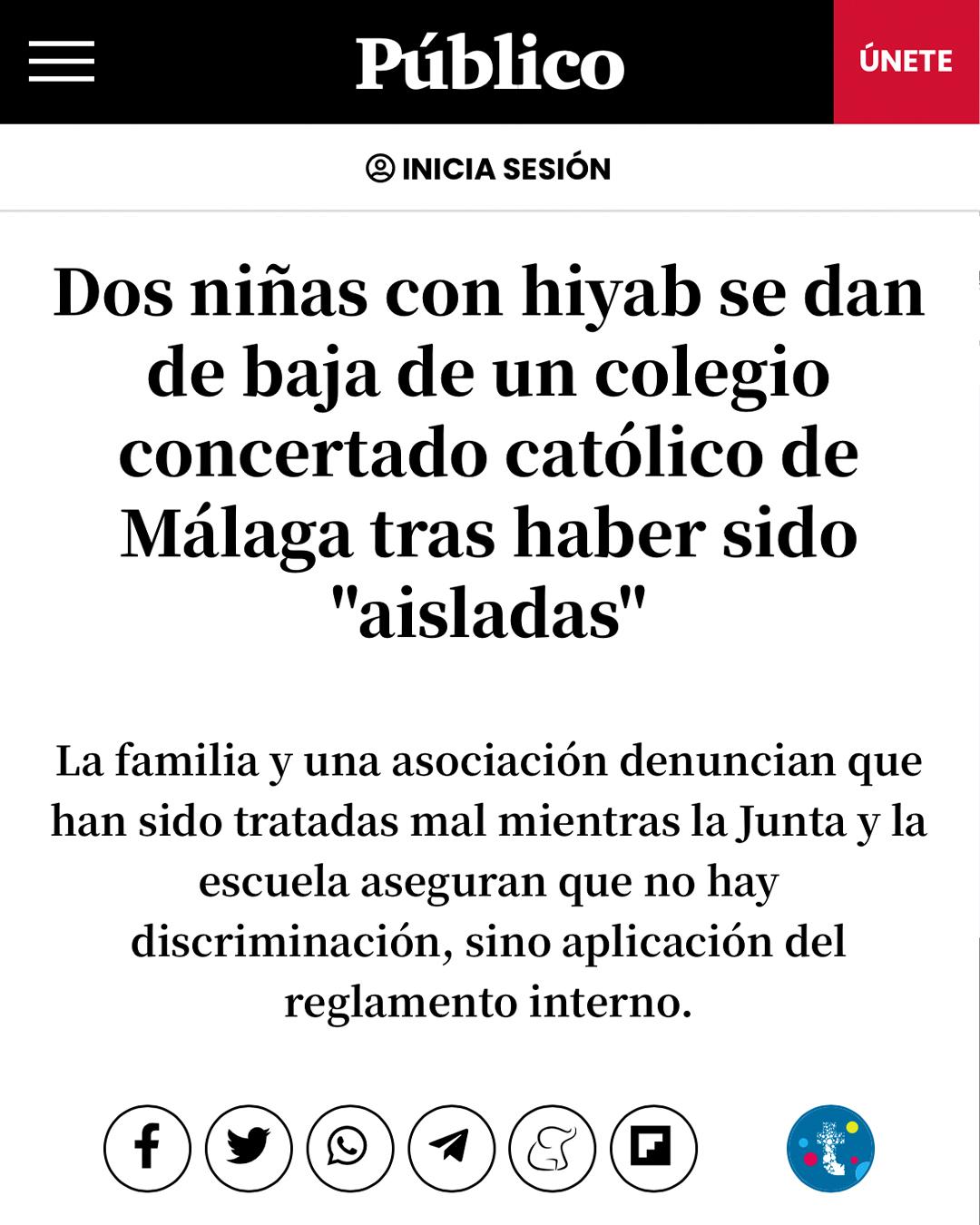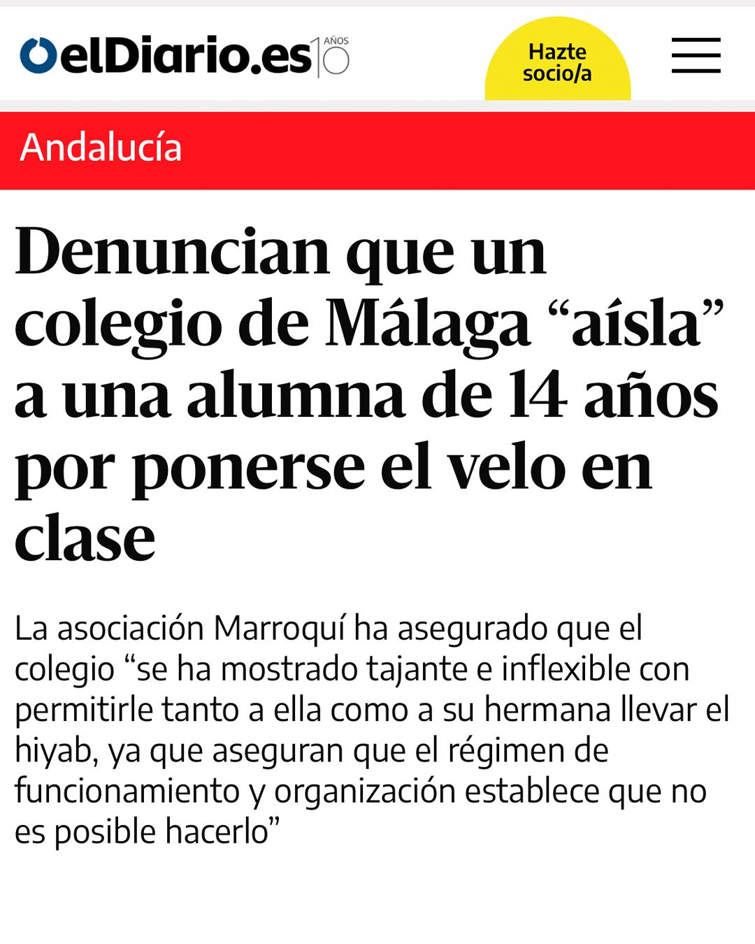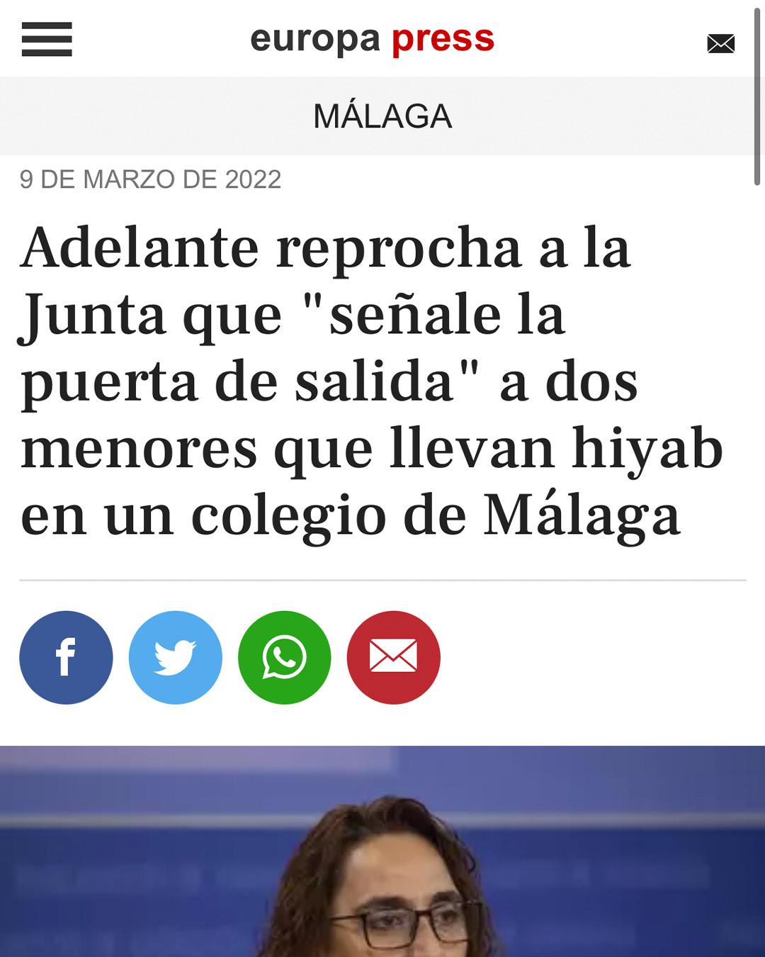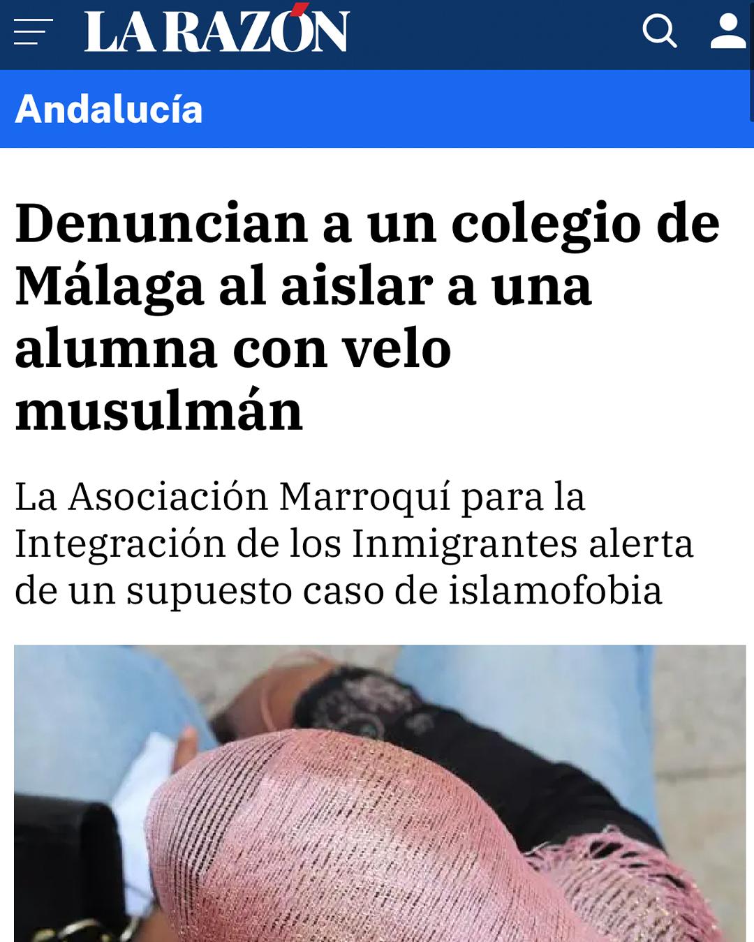 El 7 de marzo de 2022 la Asociación Marroquí para la Integración de Inmigrantes decidió visibilizar el caso de dos adolescentes de origen egipcio que sufrían intimidación por parte de su centro educativo malagueño para que no se pusiera el velo. La familia había acudido a la Asociación en febrero de este año para denunciar este caso de islamofobia. Ante esta situación se activó el servicio de asesoramiento sociojurídico que se enmarca dentro del Programa Nacional de Prevención de la Islamofobia. A pesar del diálogo con varias instituciones y de los diversos intentos de reunirse con el propio centro educativo, no hubo ninguna mejoría en esta situación. Ante esta circunstancia, la Asociación decidió ejercer presión mediática, lo cual logró desbloquear la situación cuando la Junta propuso cambiar de colegio a ambas adolescentes.