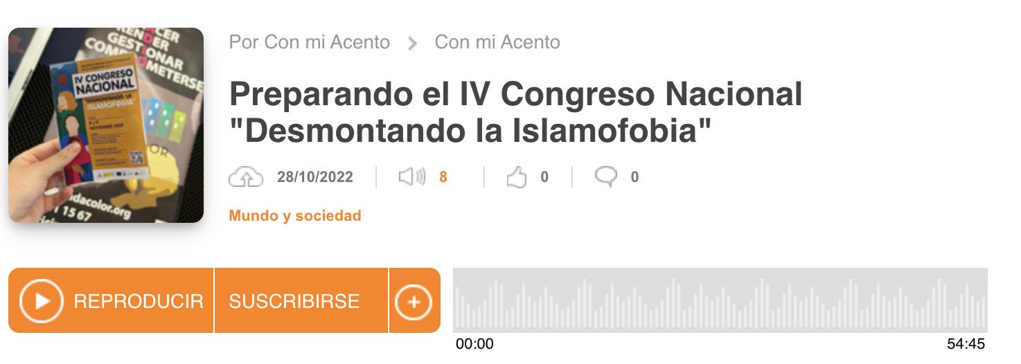 Temática: Nuestra compañera María Amira El Azem, técnica del Programa Nacional de Prevención de la Islamofobia, interviente en Canal Sur Radio para hablar sobre el Ramadán. A partir del minuto 52’30”. https://www.canalsur.es/radio/programas/canal-sur-mediodia-malaga/detalle/2894788.html?vdeo=1820742