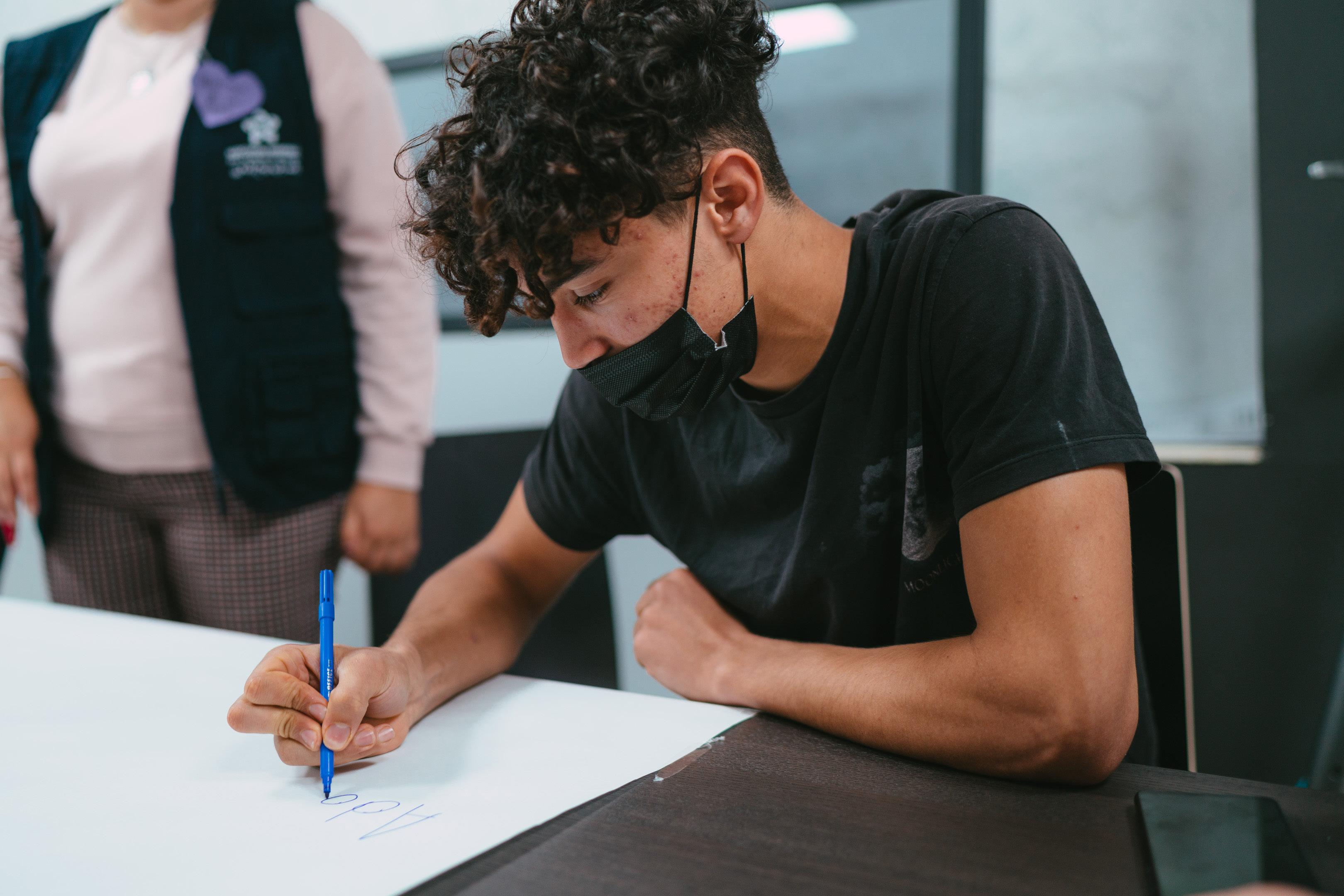 Naoufal en un taller de empoderamiento y autoestima organizado por la Asociación Marroquí para la Integración de Inmigrantes.