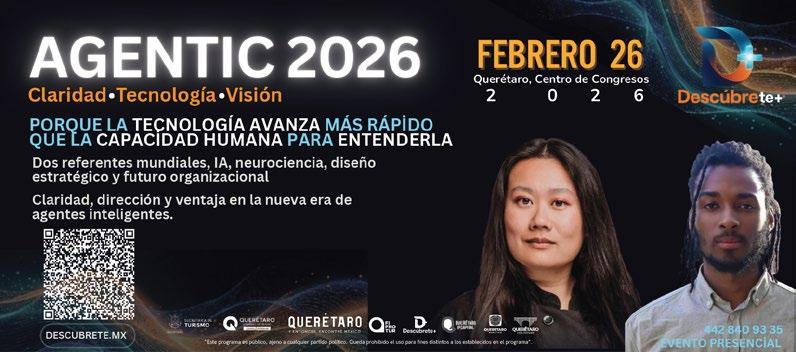 El proyecto Descúbrete+ presenta Agentic 2026, un encuentro para empresarios y tomadores de decisión que buscan comprender e integrar la nueva etapa de la inteligencia artificial: la IA agéntica, la cual actúa, decide y ejecuta tareas de forma autónoma, a diferencia de la IA tradicional, que responde a instrucciones específicas. En una jornada de conferencias magistrales, los asistentes obtendrán aproximaciones conceptuales sobre qué es la IA agéntica y cómo se diferencia de otros modelos y marcos de decisión prácticos para integrarla de forma responsable y alineada a los objetivos del negocio, así como un criterio ejecutivo para anticipar impactos reales en operación, talento y competitividad. Agentic 2026 reúne a voces que trabajan en la frontera