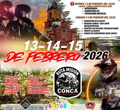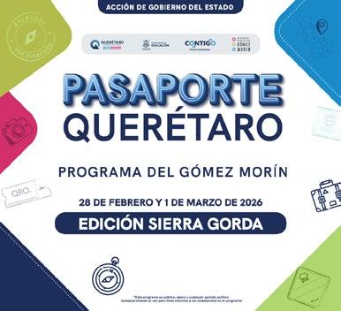 Publicación de contenido turístico y cultural del estado de Querétaro, revista mensual febrero de 2026. Editor responsable ante la Secretaría de Turismo del Estado de Querétaro: Carlos de Jesús Ajís Castillo. Número de Certificado de Reserva otorgado por el Instituto Nacional de Derecho de Autor: 04-2023-091917100000-102. Número de Certificado de Licitud de Título y Contenido: 17623. Domicilio de la Publicación: Paseo de las Artes 1531-B, Col. Josefa Vergara C.P. 76090, Santiago de Querétaro, Querétaro, México. Imprenta: Talleres Gráficos del Poder Ejecutivo del Estado de Querétaro, Francisco I. Madero 68, Centro C.P.76000, Santiago de Querétaro, Querétaro, México. Distribuidor: RIO HILL CO., Virtudes 23, Col. Misión Mariana C.P.76903, Corregidora, Querétaro, México.