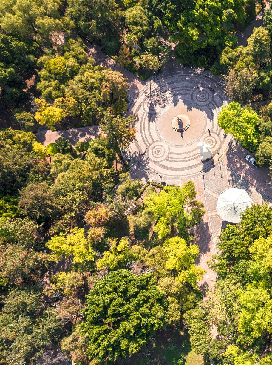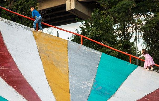 el kiosco y, por ahora, la instalación temporal Humanoides, de Amanda