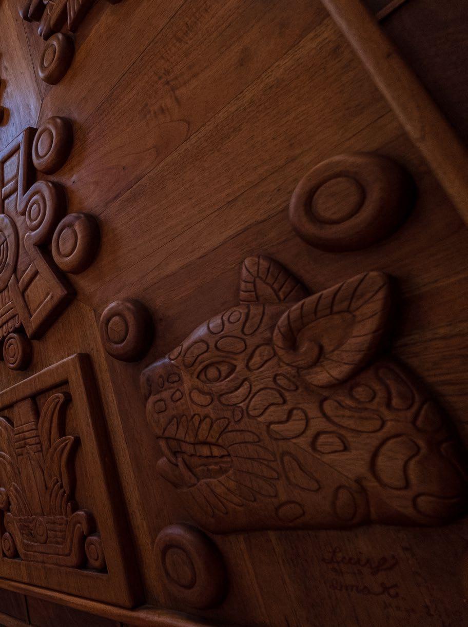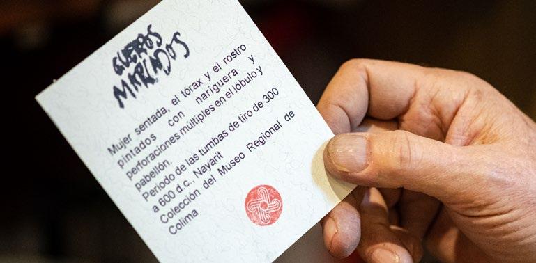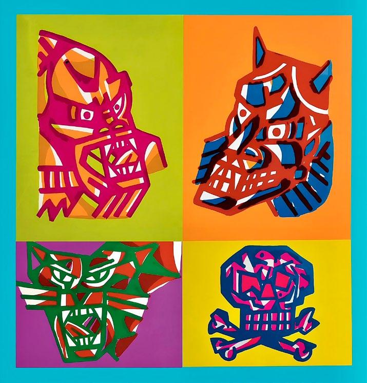 Nagual, el tatuador originario de San Luis Potosí, conocido por un estilo denominado «tradicional peyotero» —que ha llevado a otros soportes visuales, como máscaras, serigrafía, pintura, grabado, mural, entre otros—, presenta en las piezas de esta exposición un juego de líneas fuertes y colores vibrantes con un toque de cubismo.