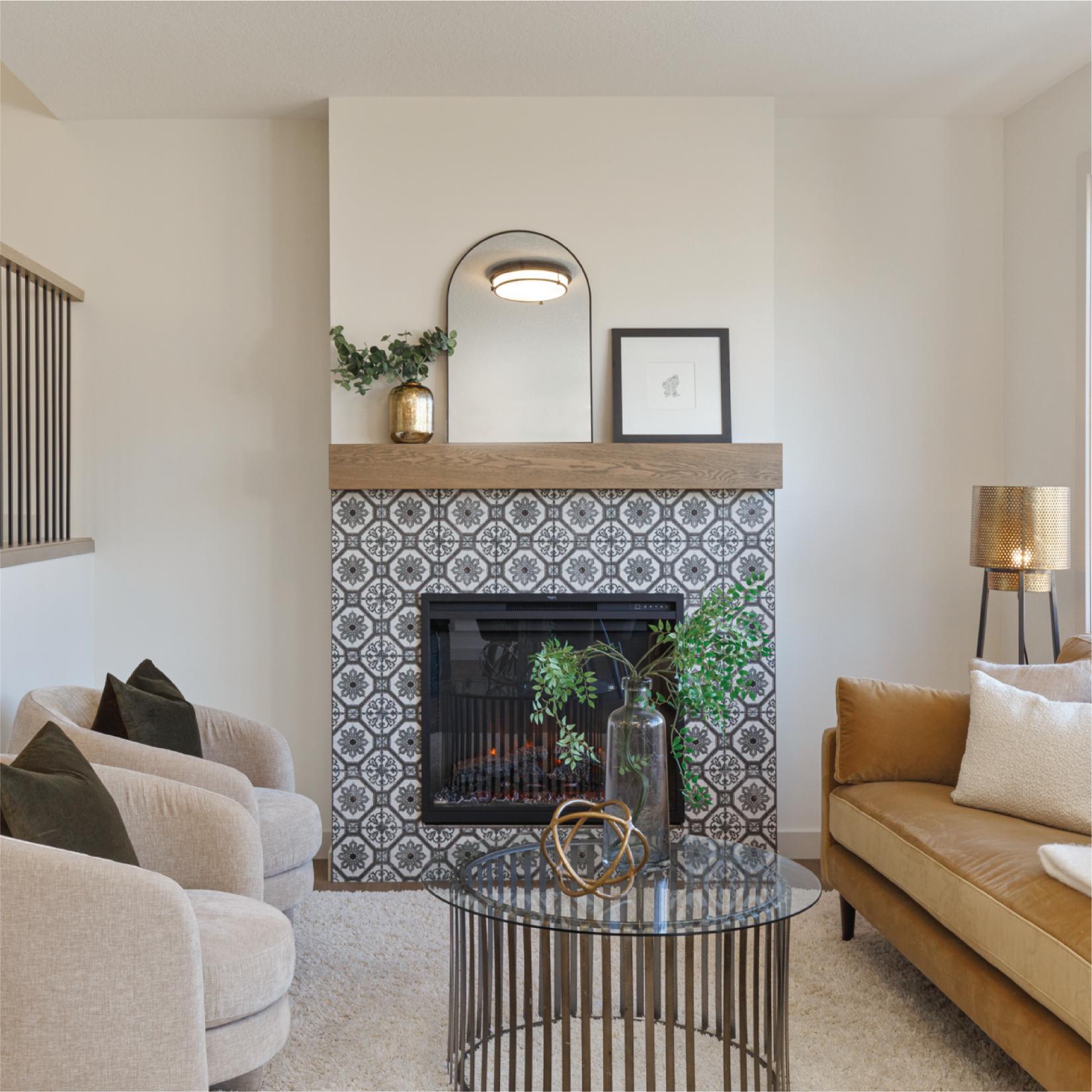 • 5 ”x 5 ” moder n p ro file maple o r M D F ma n t el w i t h clea n , f u ll-w i dt h