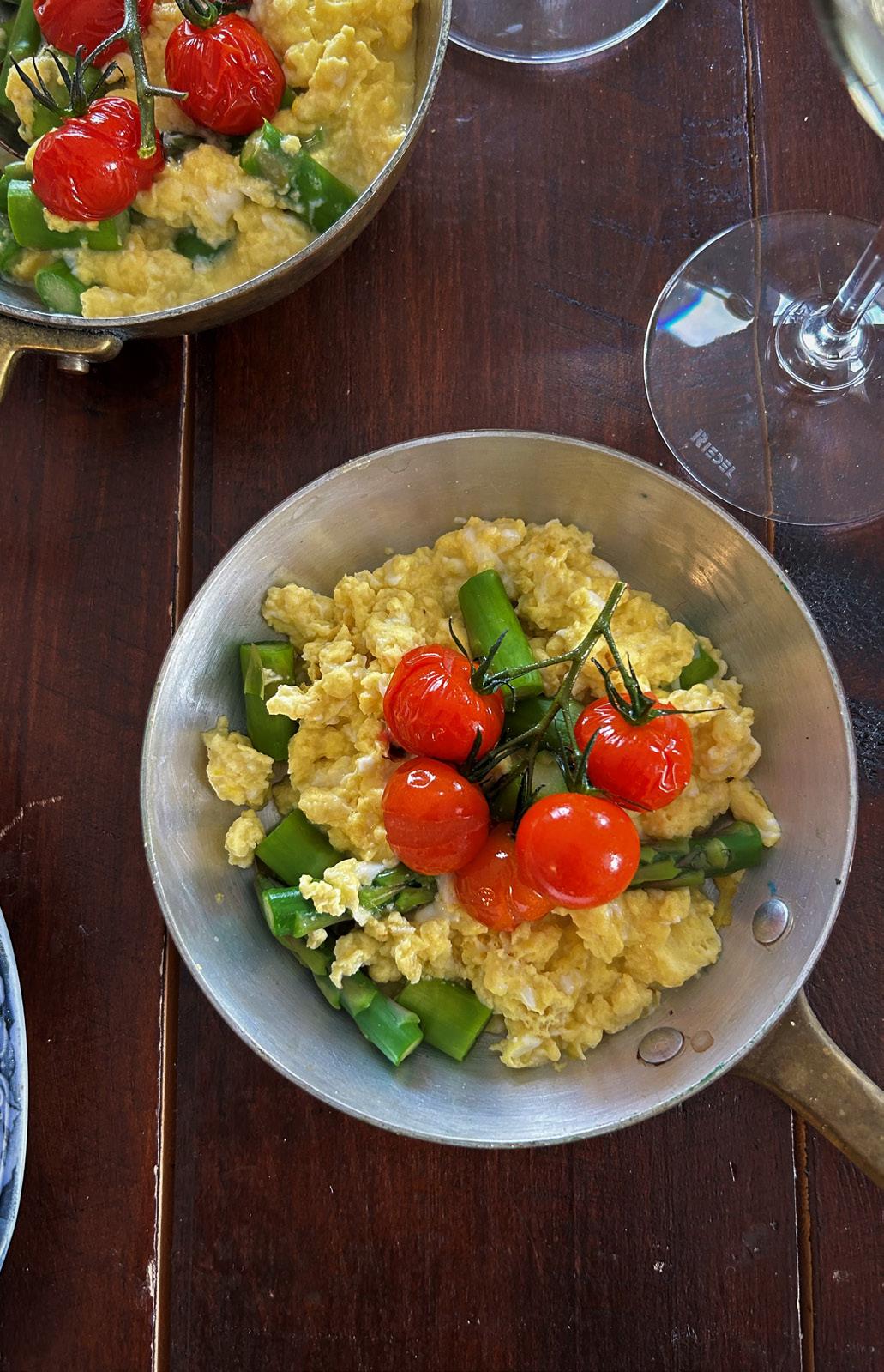 L’accord : Asperges sautées à l’œuf et à la tomate