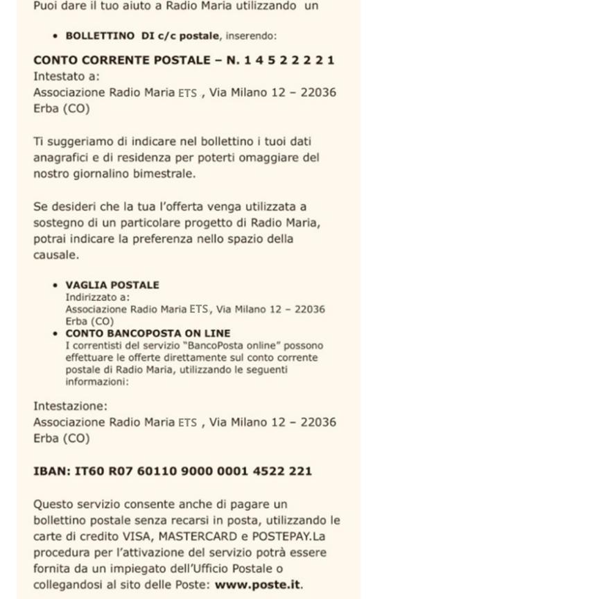 Radio Maria può farlo solo con l’aiuto di voi ascoltatori.