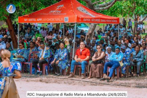Avereunaradiodedicataesclusivamenteall’evangelizzazione edallapreghieraèmoltosignificativoaMbandundudovesi parlalalinguaKikongo.Vasottolineatocheil23agosto2025, cioèungiornoprimal’inaugurazionediRadioMariaa Mbandundu,Mons.