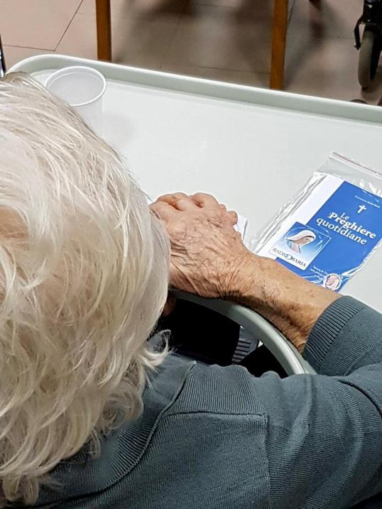 Vi ringrazio infinitamente per il vostro meraviglioso pensiero. Mi sono commossa peresserestataricordata Ciòchemiavete inviatoèquantodesideravo:laradiolinaeil librodipreghiere.Literròsempreconme, anche quando uscirò di qui, se Dio vorrà. Potròtenerlinellaborsaconme. IlsolepernoièlaParoladiDio.
