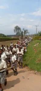 Qui il sacerdote direttore guida la salita dello staff … raggiungono un villaggio lontano per effettuare un collegamento di preghiera da trasmettere su Radio Maria Uganda!