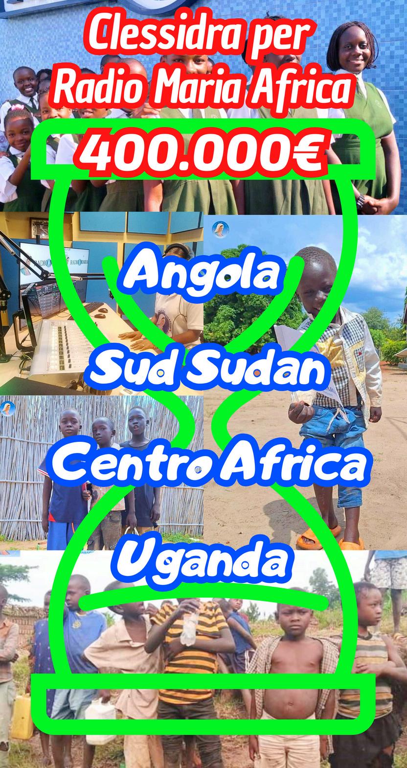 La Clessidra Missionaria è unica nel suo genere, creata per il Natale del dicembre 2020 da un gruppo di ragazze italiane di Radio Maria con lo scopo di raccogliere fondi per realizzare stazioni di Radio Maria in diversi punti strategici dell’Africa dove troppe sono le guerre etniche ancora in corso e dove urge risanare le anime per portarle al cuore della Madonna e a Dio. Tante lingue diverse da villaggio a villaggio, territori immensi: una vera sfida che solo uno strumento come Radio Maria riesce a raccogliere e a concretizzare. Una vera scuola alle popolazioni, dall’istruzione all’educazione cristiana per poi diventare lo strumento di riconciliazione nei luoghi di conflitto, creando ponti di preghiera e collegamenti per le Sante Messe. Unire, pregare insieme come sorelle e fratelli senza guardarsi più come nemici. La generosità degli ascoltatori italiani è insuperabile per questo noi ragazze di Radio Maria abbiamo pensato di definirli missionari: con tanti sacrifici hanno creato tutte le Radio Maria nel continente africano realizzando un seguito di milioni di ascoltatori al giorno.