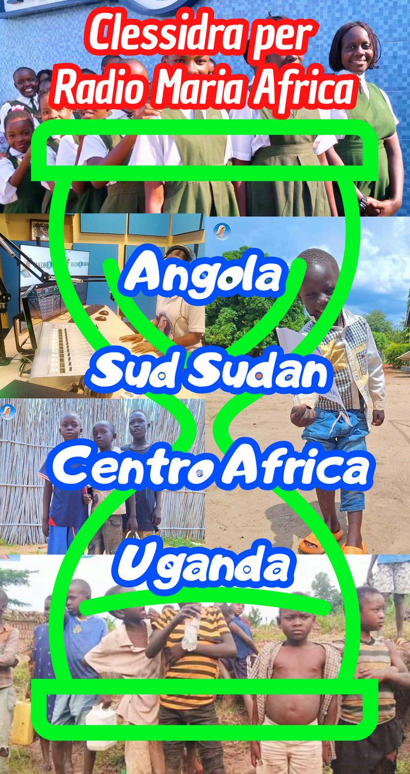 Carissimi dedichiamo queste pagine alle Clessidre Missionarie di Radio Maria e a tutti gli ascoltatori che da “formichine” diventano “missionari” di Radio Maria per diffondere il Vangelo e la voce della Regina della Pace nelle terre più stravolte e dimenticate.