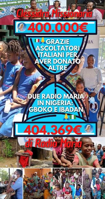 Grazie di cuore ascoltatori missionari di Radio Maria: che la Regina della Pace vi sorrida sempre, protegga voi e le vostre famiglie e benedica ogni sacrificio per la diffusione del vangelo.
