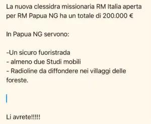 CLESSIDRA MISSIONARIA PRO RADIO MARIA PAPUA NUOVA GUINEA APERTA PASSAPAROLA PIÙ SIAMO PIÙ POSSIAMO FARE: GRAZIE PER IL TUO AIUTO