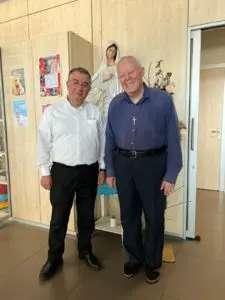 Per non parlare poi degli anziani li residenti che letteralmente sprizzavano Gioia da tutti i pori. Avevamo con noi la statua della Vergine pellegrina che abbiamo fatto arrivare da Cagliari, dove era appunto pellegrina ed abbiamo lasciato in una delle due strutture per due giorni, con tanta felicità dei nonnini e nonnine. Abbiamo celebrato messa insieme, cantato Grazie a Maurizio e la sua chitarra, recitato il santo rosario meditato e dopo ci siamo ritrovati per un momento di gioia e ricreazione nel salone della casa di riposo sita in via Roma.