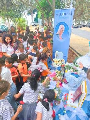 Nella foto: i bambini della scuola latina di Rafidia, Nablus, insieme ai loro fratellini e a sr Mira, suora del Rosario che li prepara alla loro Prima Comunione, si sono uniti in preghiera in diretta su Radio Maria Nazareth dalla Cisgiordania (Palestina) e hanno acceso una candela per Radio Maria. Noi ricambiamo con tanto amore e tanta preghiera��