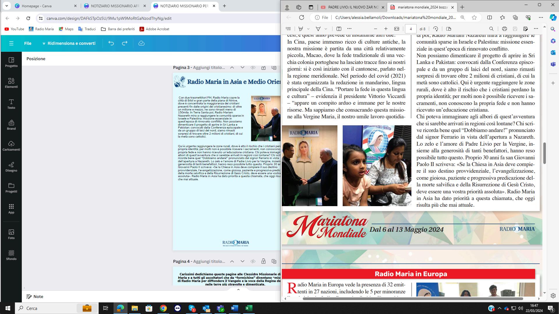 PadreLivio:GraziecaroJoseph,tiringraziomolto.Haifattobellaesposizione.Tuseisul frontedell’Asiadatantianni,insomma,nehaimacinatidichilometri,peròcomunquei risultaticisonoedeviessereanchefierodiquestirisultati.Cariascoltatori,comeavetevisto lamessaèmolta,glioperaisonopochieanchequeglioperaimancanodirisorseperché vedetequanteRadioMariadobbiamoaiutareancheinAsia.Nonèchedobbiamofare l’elemosinaallaMadonna,dobbiamorispondereallachiamata,Leicichiamaaessere evangelizzatoriconLeiecichiamaaparteciparedelsuopiano,cichiamaaesserepartecipi dellasuamissione.Sentiamocicorresponsabili.Facciamofinoinfondolanostrapartenella diffusionedelregnodiDio,questoèperilbenedelmondoestatetranquillichesuquesta stradapoilaMadonnacibenedirà,ecidaràancheilcentuplodiquellochenoiavremmodato aLeiconquesto.