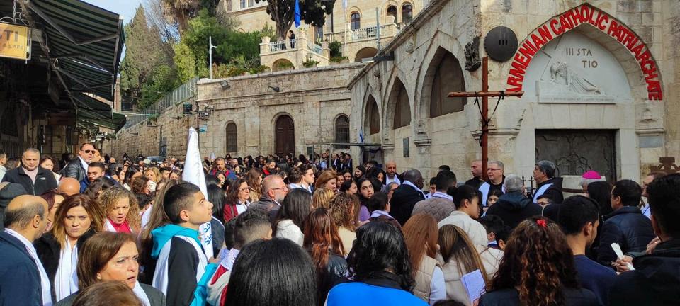 #Gerusalemme ieri sulla Via Dolorosa più di 1000 studenti di tutte le scuole cristiane di Gerusalemme hanno percorso la #ViaCrucis, invocando la #pace in #TerraSanta