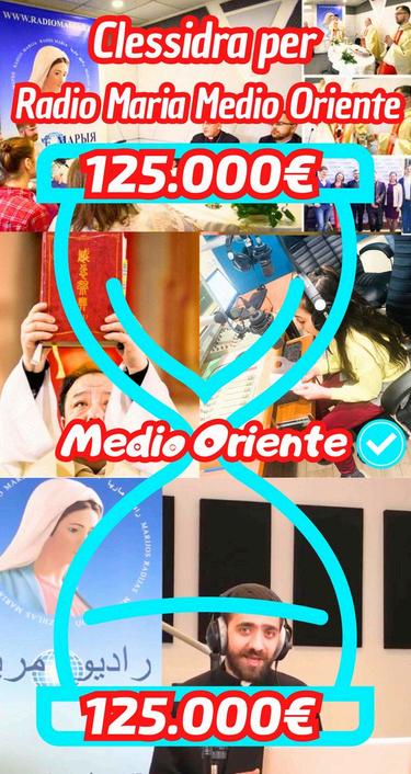 Radio Maria è una grazia che la Madonna ha donato al mondo per l'evangelizzazione ed è a grazie a voi che possiamo rispondere con un grande sforzo che deve assolutamente continuare per aiutarLa nel Suo piano, fino a quando Lei desidera e ne avrà bisogno. In questo periodo di Avvento e Natale dobbiamo confermare tutto il nostro impegno e la nostra generosità proprio come i pastori che portarono i loro doni a Gesù Bambino. Decidere di Aiutare RM è una scelta motivata, seria, personale: è aiutare il piano della Madonna che vuole salvarci e aiutarci a portare più anime possibili a Gesù e noi dobbiamo darvi da fare per aiutare lei in questo. Radio Maria non è come le altre Radio lo scopo è radicalmente diverso: non è un ascolto superficiale veloce di passaggio... Essere ascoltatori di Radio Maria è percorrere il cammino di conversione che ci coinvolge tutti come famiglia vastissima che non ha più confini oramai. Perché ogni paese, soprattutto quelli in luoghi estremi, ha Radio Maria nella propria lingua nel proprio idioma pensate all’Africa ma non solo. E questo è tutto merito vostro alla vostra risposta di cuore e anima. Provate a pensare le Radio Maria ad ogni latitudine che negli stessi orari anche se con fusi diversi trasmette le sante messe i rosari la preghiera liturgica... pensate a quale comunione incredibile di milioni di anime. Ci sono paesi nel mondo dove le chiese sono inesistenti o bisogna percorrere chilometri e chilometri prima di raggiungerne una. Ecco... ogni pomeriggio insieme in questo periodo di avvento e di pre-mariatona e poi di mariatona, ricorderemo un po' tutti gli aspetti di Radio Maria perché niente è scontato!