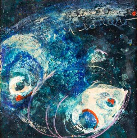 B) “Senza Titolo”, 1980, tecnica mista su tavola, cm 14,5x14,5, al verso reca firma e data “G. Pinna 80”