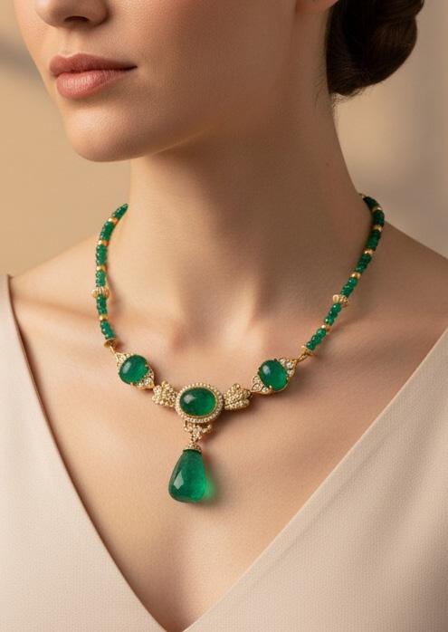ORECCHINI A LOBO CON SMERALDI E DIAMANTI