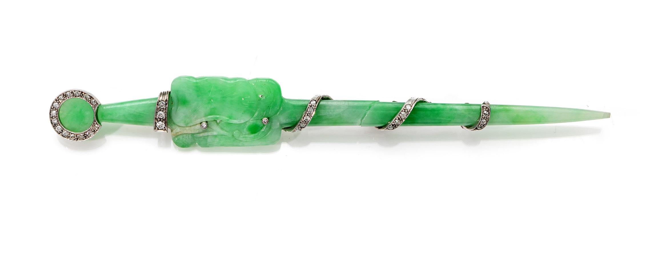 SPILLA ANTICA A BARRETTA, ORO, ARGENTO E DIAMANTI