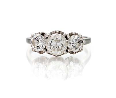 Oro bianco 750/000. Diamanti in taglio rotondo brillante, ct. 2,00 ca, prob. F-G,VVS1. Peso complessivo gr. 3,80. Misura 10