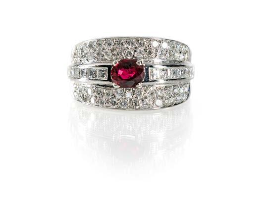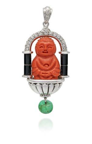 WEBB, ANELLO IN ORO E PLATINO, CORALLO, SMALTO, BRILLANTI