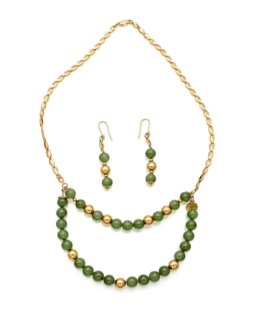 BUCCELLATI, PARURE DI GIROCOLLO, ORECCHINI E SPILLA IN ORO Oro giallo 750/000. Peso complessivo gr. 30,90