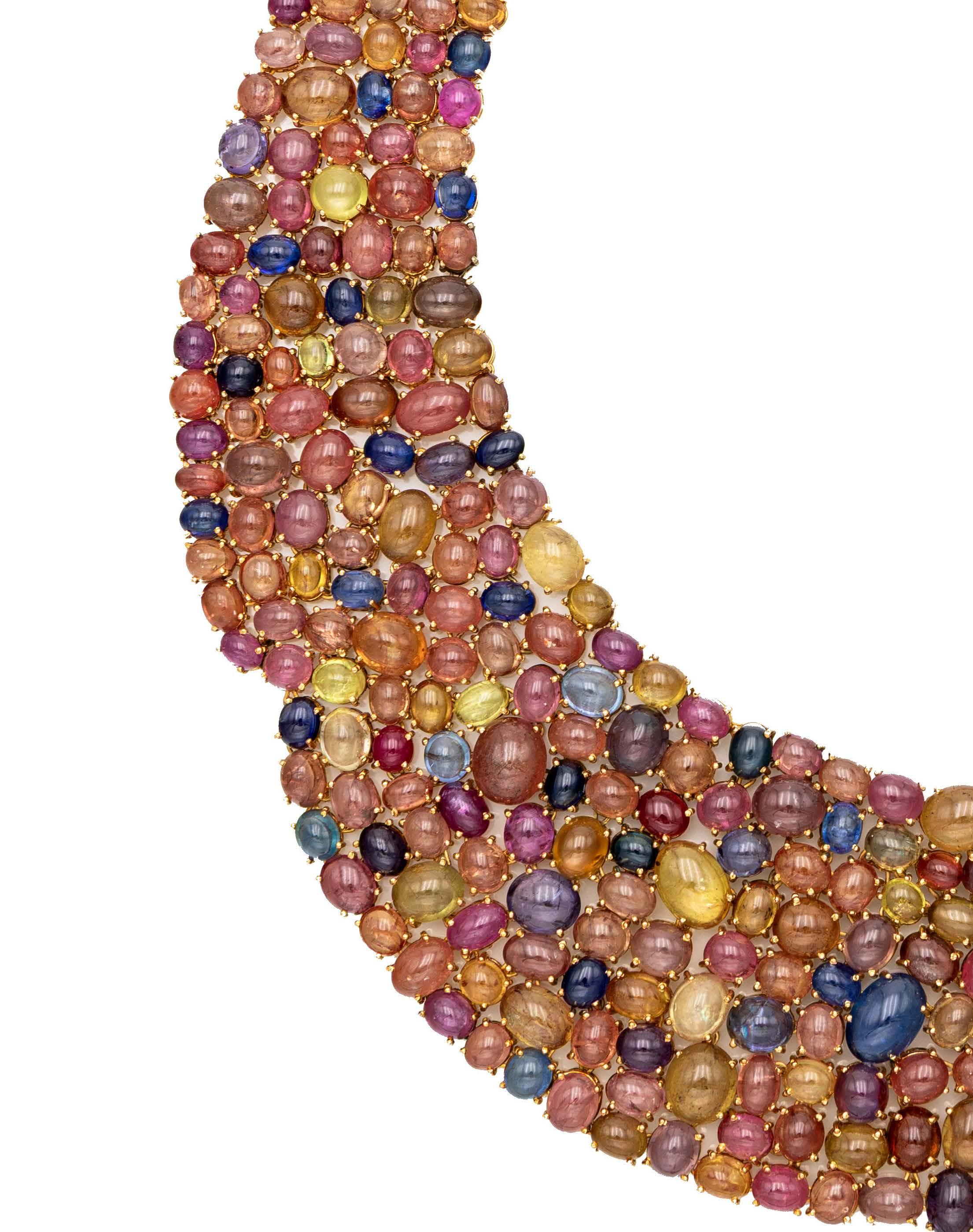 PARURE GIROCOLLO E COPPIA DI ORECCHINI IN ORO, SMALTO E ZAFFIRI