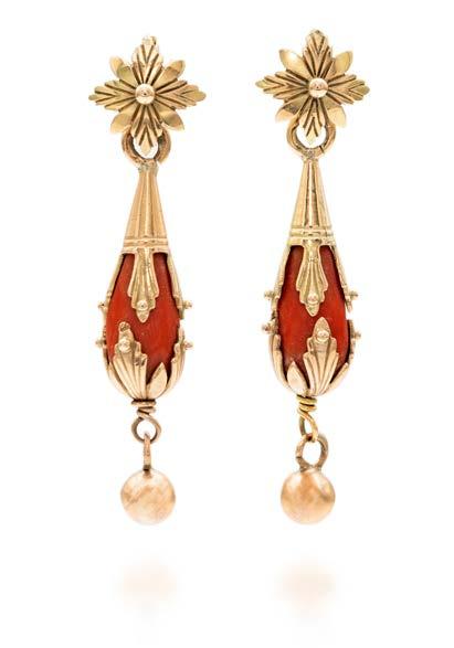 COPPIA DI ORECCHINI A MONACHINA IN ORO E GRANATI
